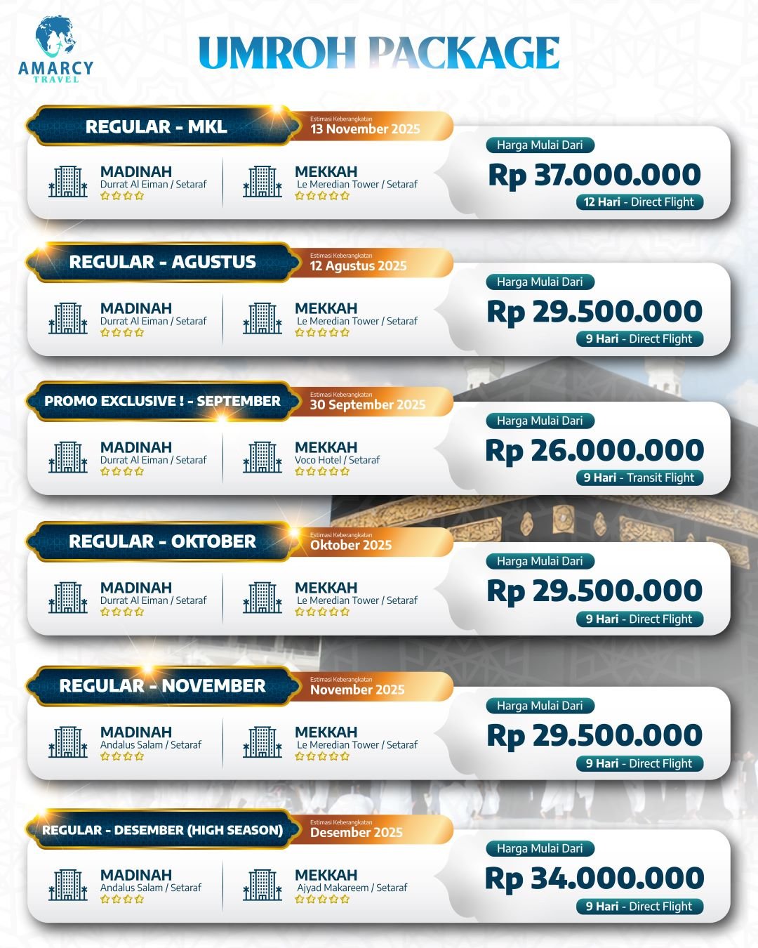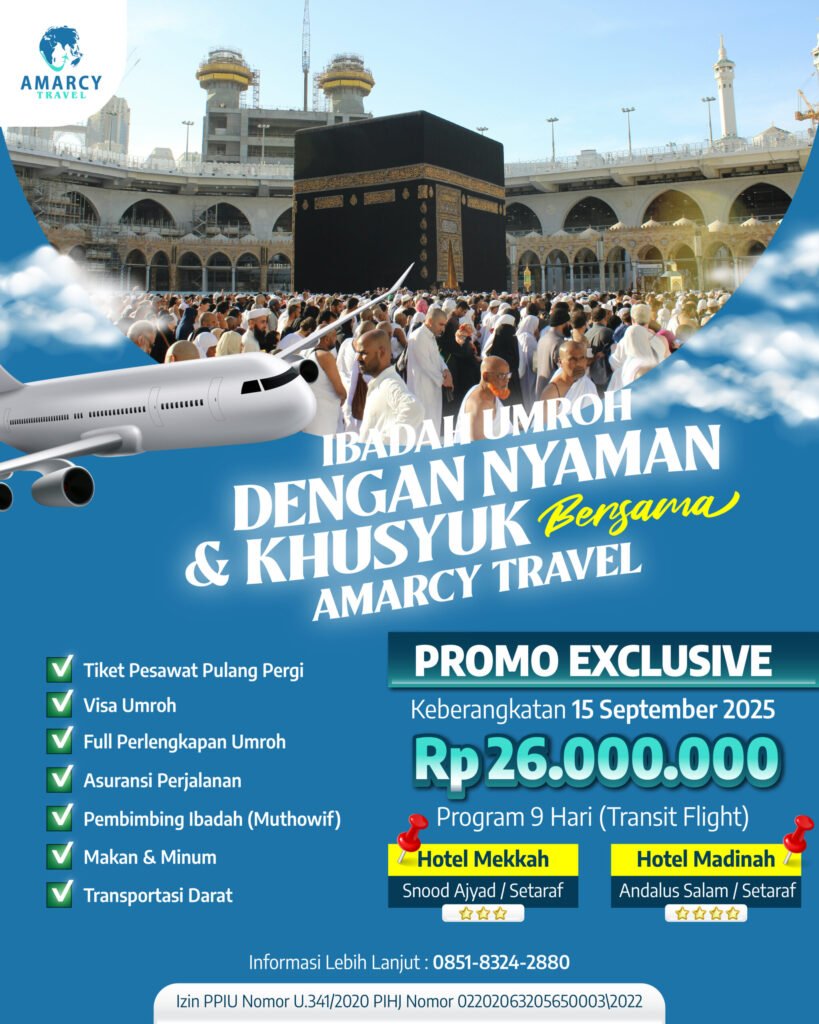 Yuk Umroh bersama Amarcy Travel. Kontak Whatsapp kami untuk tahu harga dan keberangkatannya. Ibadah khusyuk dan nyaman bersama Amarcy Travel